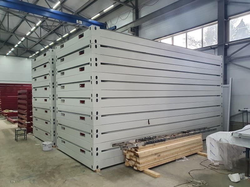 Комплект поставки содержит здание, кровли и инженерные системы. Форма поставки — модули в транспортной форме EasyPack, комплектация — в морских контейнерах.